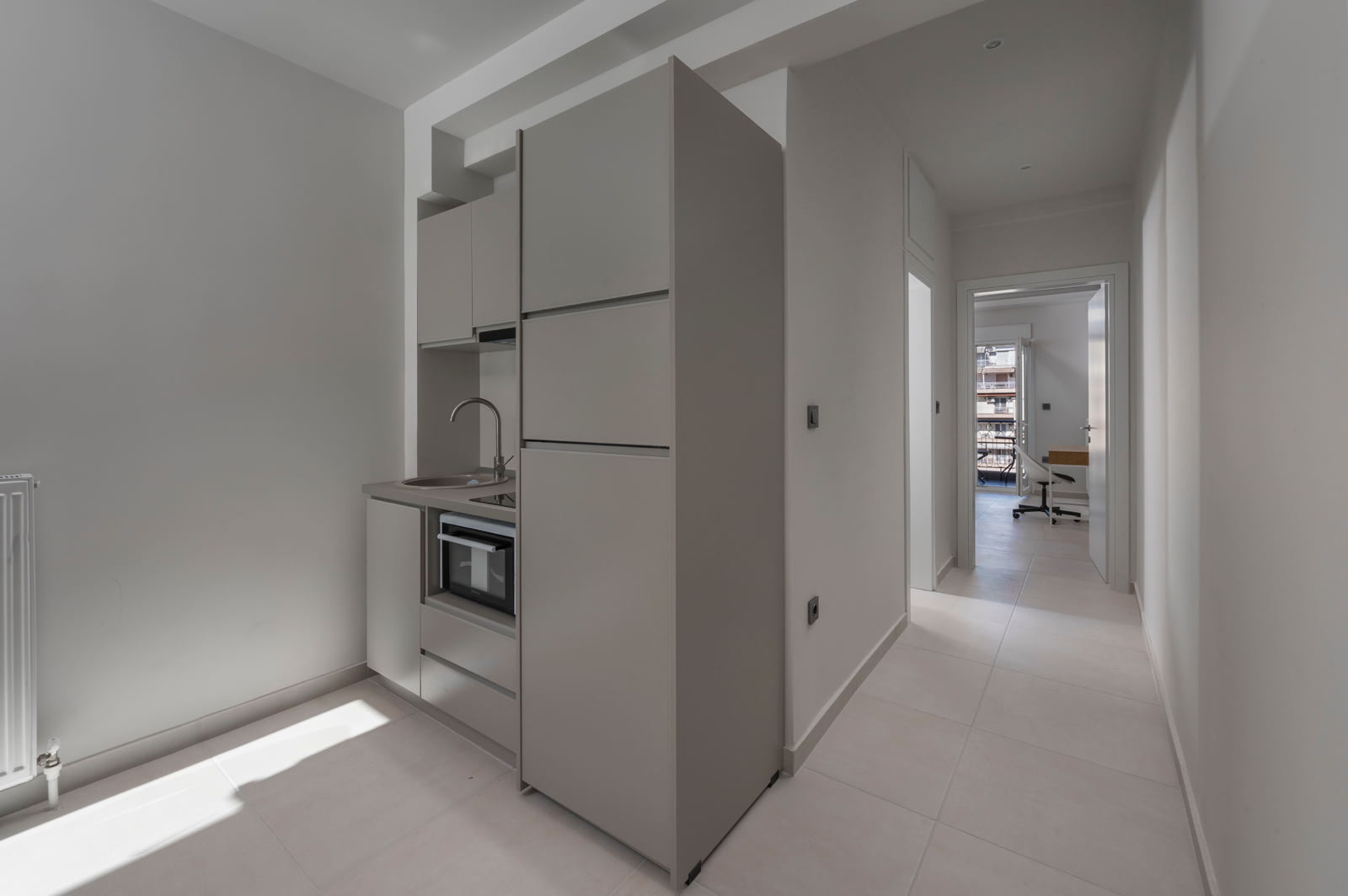 Διαμέρισμα Δ1 πρόσοψης με θέα και μεγάλο μπαλκόνι, ένα δωμάτιο, σαλόνι, κουζίνα και μπάνιο, μικτού εμβαδού 57 τμ.