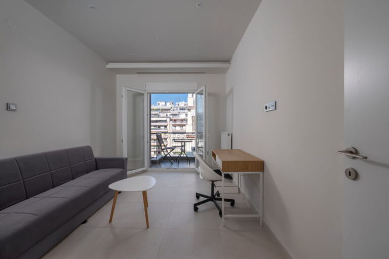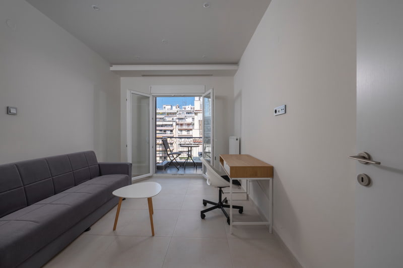 Πλήρως επιπλωμένο και εξοπλισμένο με έπιπλα κουζίνας με ψυγείο, απορροφητήρα, ζεστό νερό από φυσικό αέριο, φούρνο και κεραμικές εστίες, τετράφυλλες ντουλάπες, κρεβάτι, στρώμα, κομοδίνο, τραπέζι κουζίνας με καρέκλες, καναπέ κρεβάτι με τραπεζάκι, γραφείο με καρέκλα, air condition Daikin ενεργειακής κλάσης ΑΑ και smart TV 43’’.