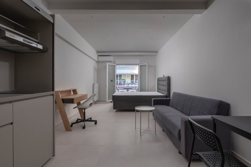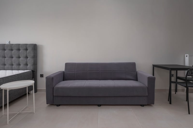 Fully furnished and equipped with kitchen furniture including a refrigerator, extractor fan, hot water from natural gas, oven and ceramic hobs, triple wardrobes, bed, mattress, bedside table, kitchen table with chairs, sofa bed with coffee table, desk with chair, Daikin air conditioner of energy class A and 43'' smart TV.